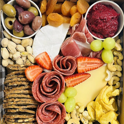 A grazing box is a thoughtfully curated selection of fresh, high-quality ingredients designed to delight your senses with a vibrant array of flavours and colours. It’s a feast for the eyes and the palate, perfect for adding a touch of elegance to any occasion. Explore our catering menu to find options tailored for gatherings of all sizes, ensuring every guest enjoys a truly memorable experience.